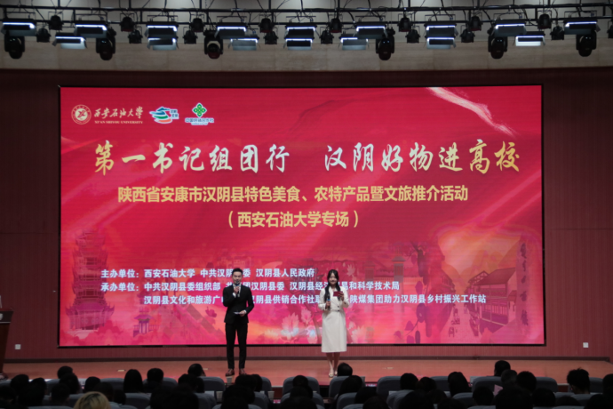 11月20日,“第一书记组团行・汉阴好物进高校”—陕西省安康市汉阴县特色美食、农特产品暨文旅推介活动在我校鄠邑校区成功举办。汉阴县委副书记王众义,县委常委、组织部长李万华,县政府党组成员屈斐斐,县委组织部、共青团汉阴县委、经济贸易和科学技术局、文化和旅游广电局、供销合作社联合社、陕煤集团助力汉阴县乡村振兴工作站等单位负责人,省市县部分派驻汉阴县驻村第一书记和工作队员代表,我校副校长种宇宏,党委组织部、党委学生工作部、校团委、教务处、科研处、校友工作与合作交流处、后勤处、西安石大资产经营有限公司等单位负责人,各院(系)团委(团总支)书记,学生代表参与活动。