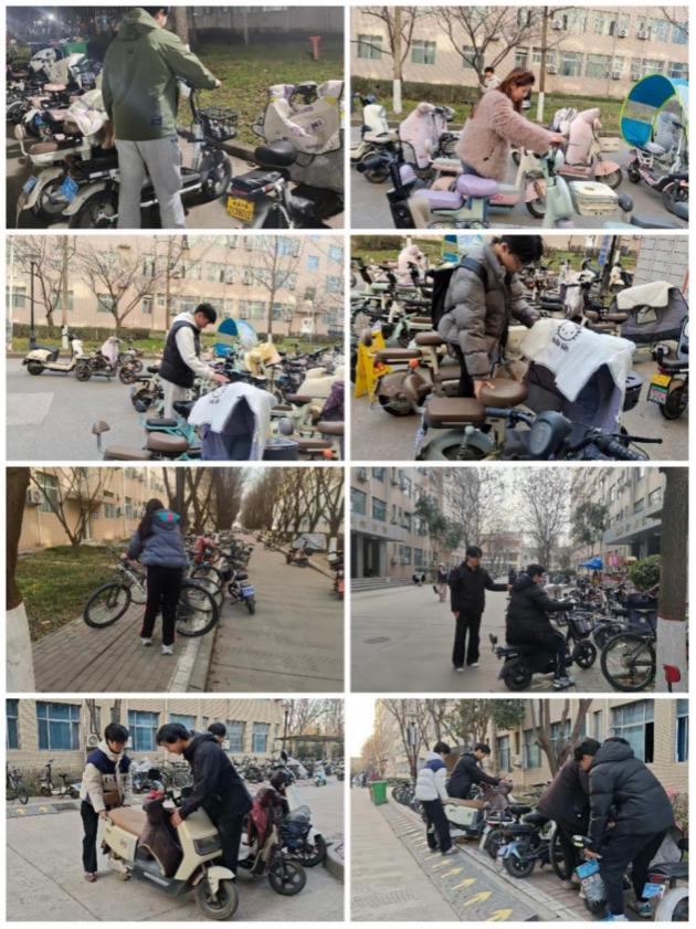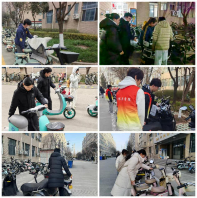 活动期间,各志愿者分工协作、密切配合,重点对全校1—20号宿舍楼下的非机动车停放区域进行了集中整治。面对车辆随意停放、占用消防通道等现象,志愿者们耐心细致地将车辆挪移归位、整齐排列,确保道路畅通、秩序井然。同时,志愿者们还积极开展文明停放宣传,向同学们讲解无序停放的潜在危害,倡导大家自觉遵守校园管理规定,共同维护美好校园环境,从小事做起,养成文明好习惯。