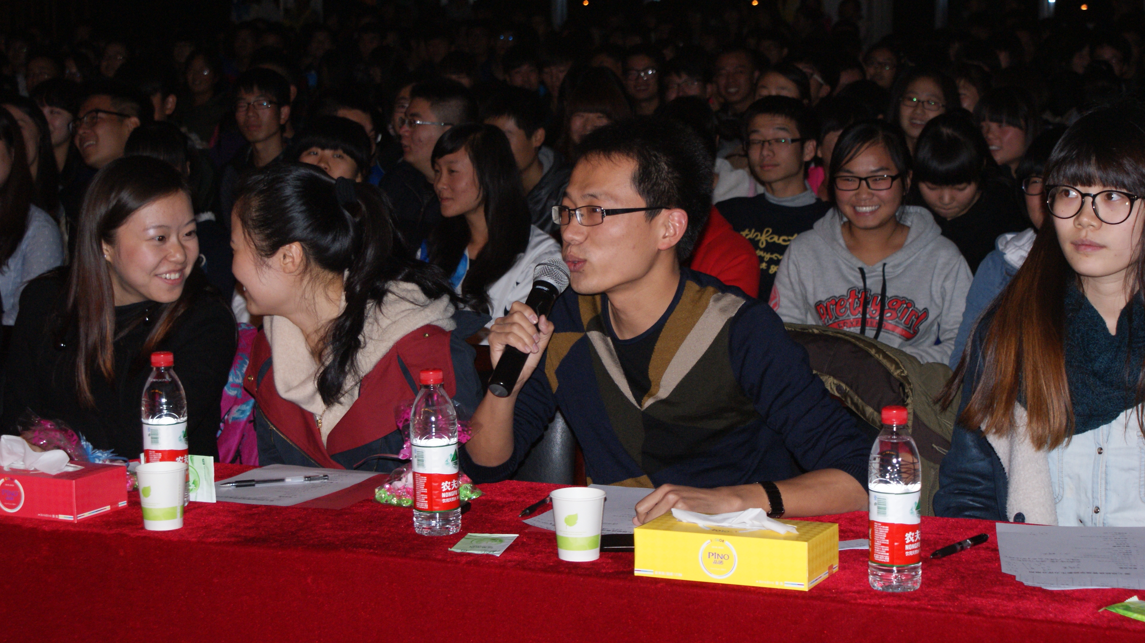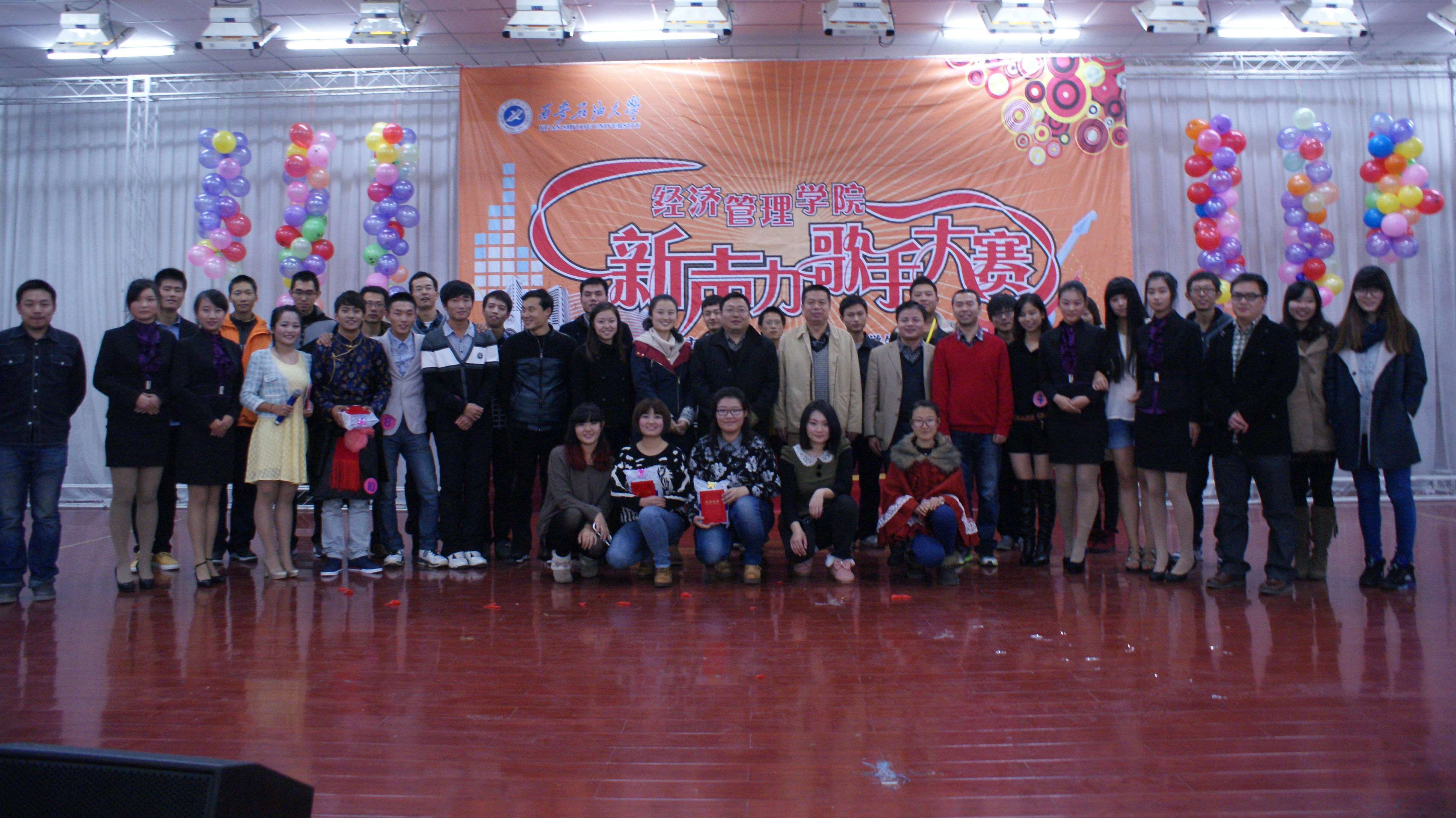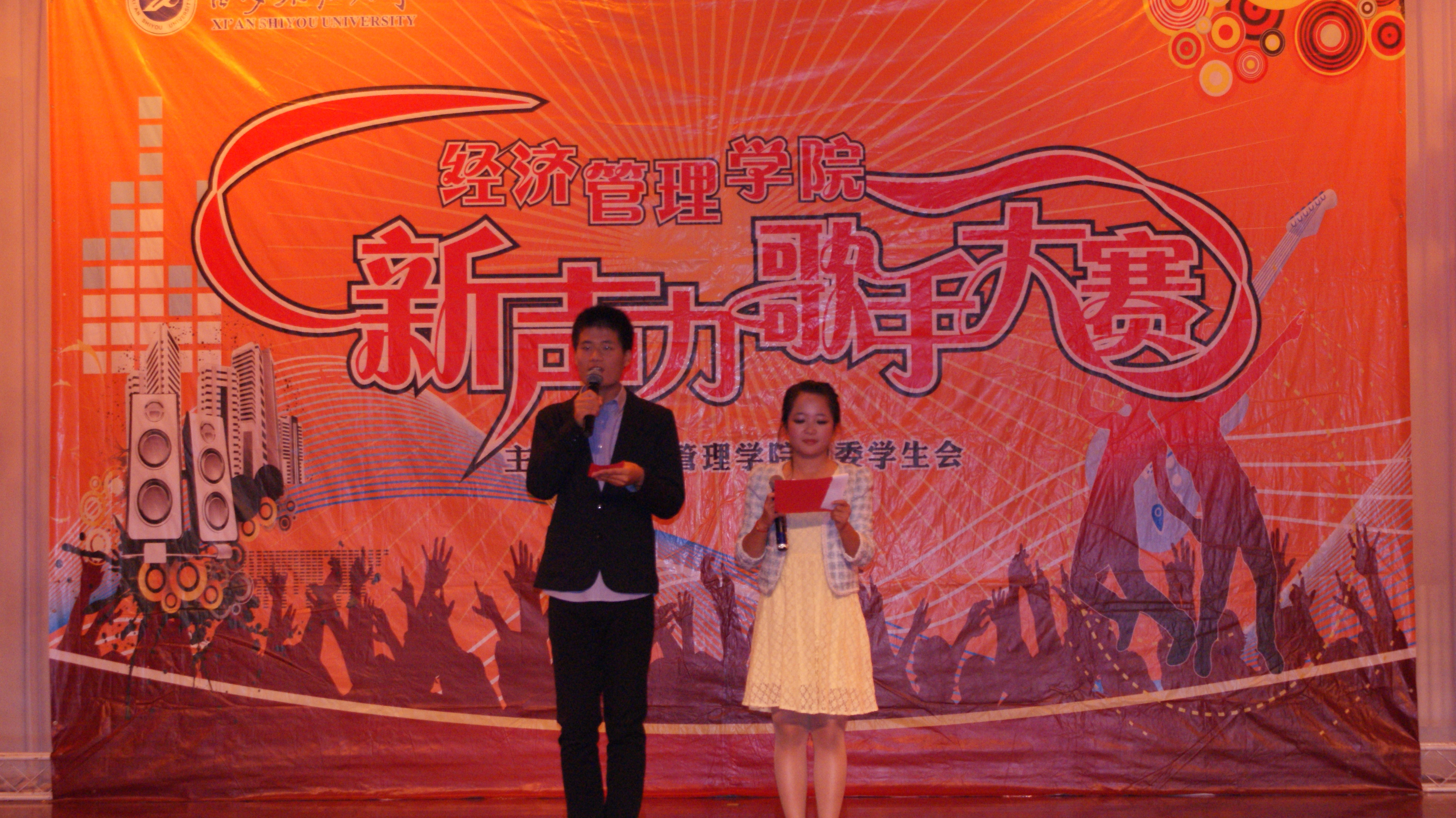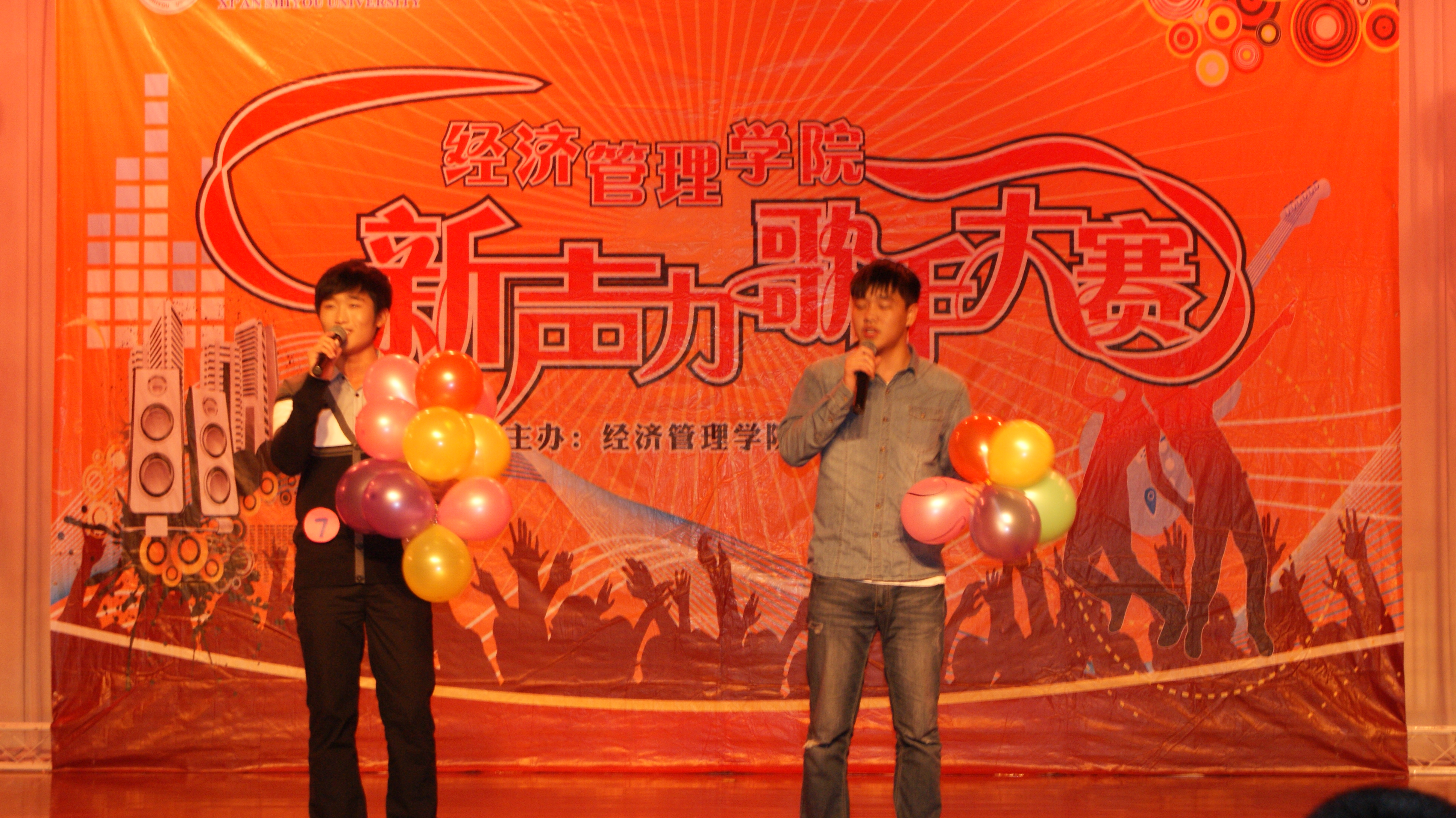 2013年11月10日19时30分,由经济管理学院主办的第七届“经管新声力”校园歌手大赛决赛在腾辉大学生活动中心隆重举行。出席本次比赛的嘉宾有:经济管理学院党委书记马行天老师、经济管理学院副院长吴晓鸥老师、经济管理学院党委副书记蔡强老师、校团委办公室主任杜永峰老师、经济管理学院学生管理办公室主任袁坤老师以及各兄弟院系辅导员们。经济管理学院2013级全体学生观看了比赛。