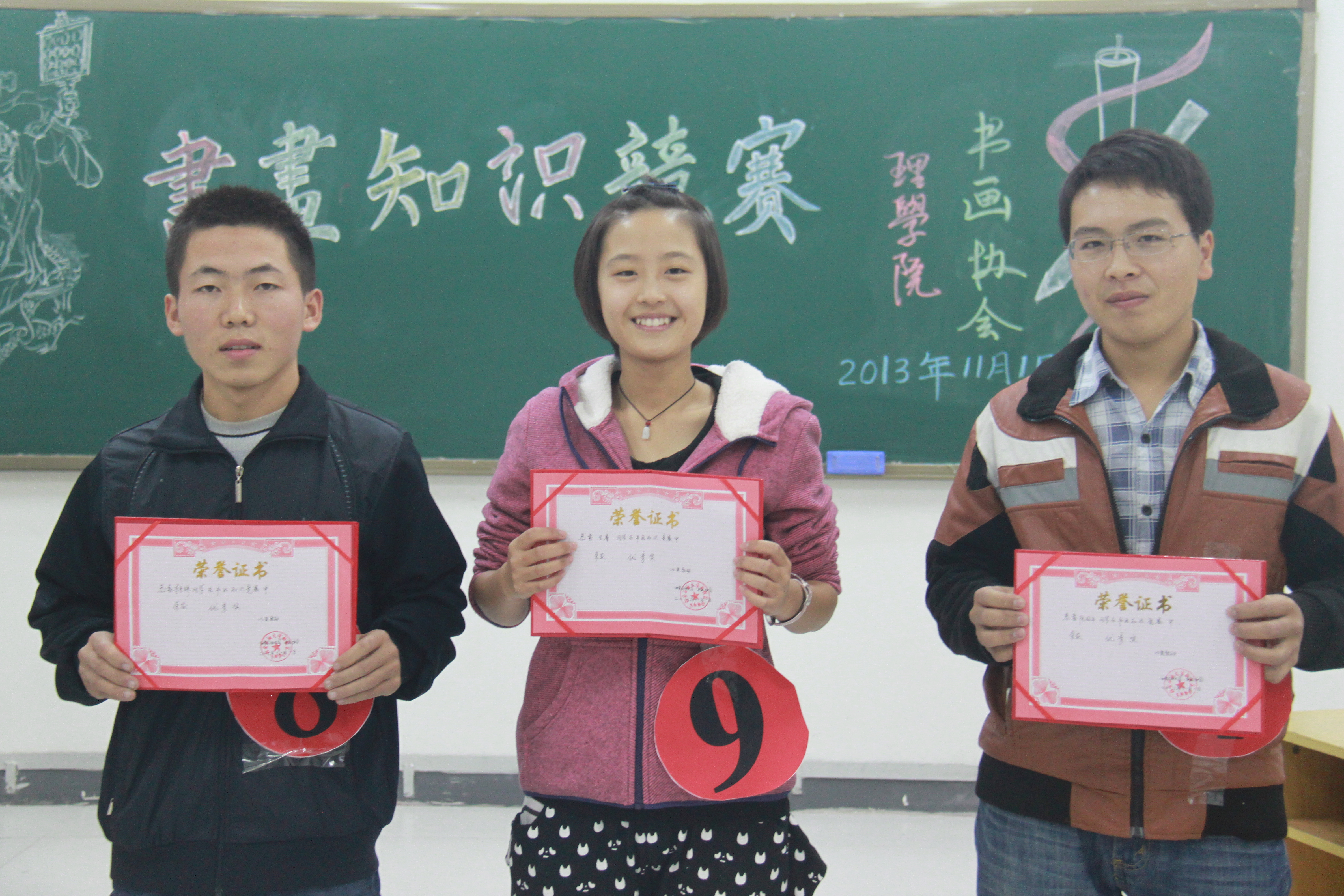 11月1日晚,我校书画协会“知识文化竞赛”决赛在新校区C2楼105教室举行。理学院副主席亢闯同学、社团管理部副部长梁晨阳同学、书画与设计协会会长王小飞同学等人出席了本次活动。书画协会全体会员以及其他兄弟社团成员观看了此次比赛。