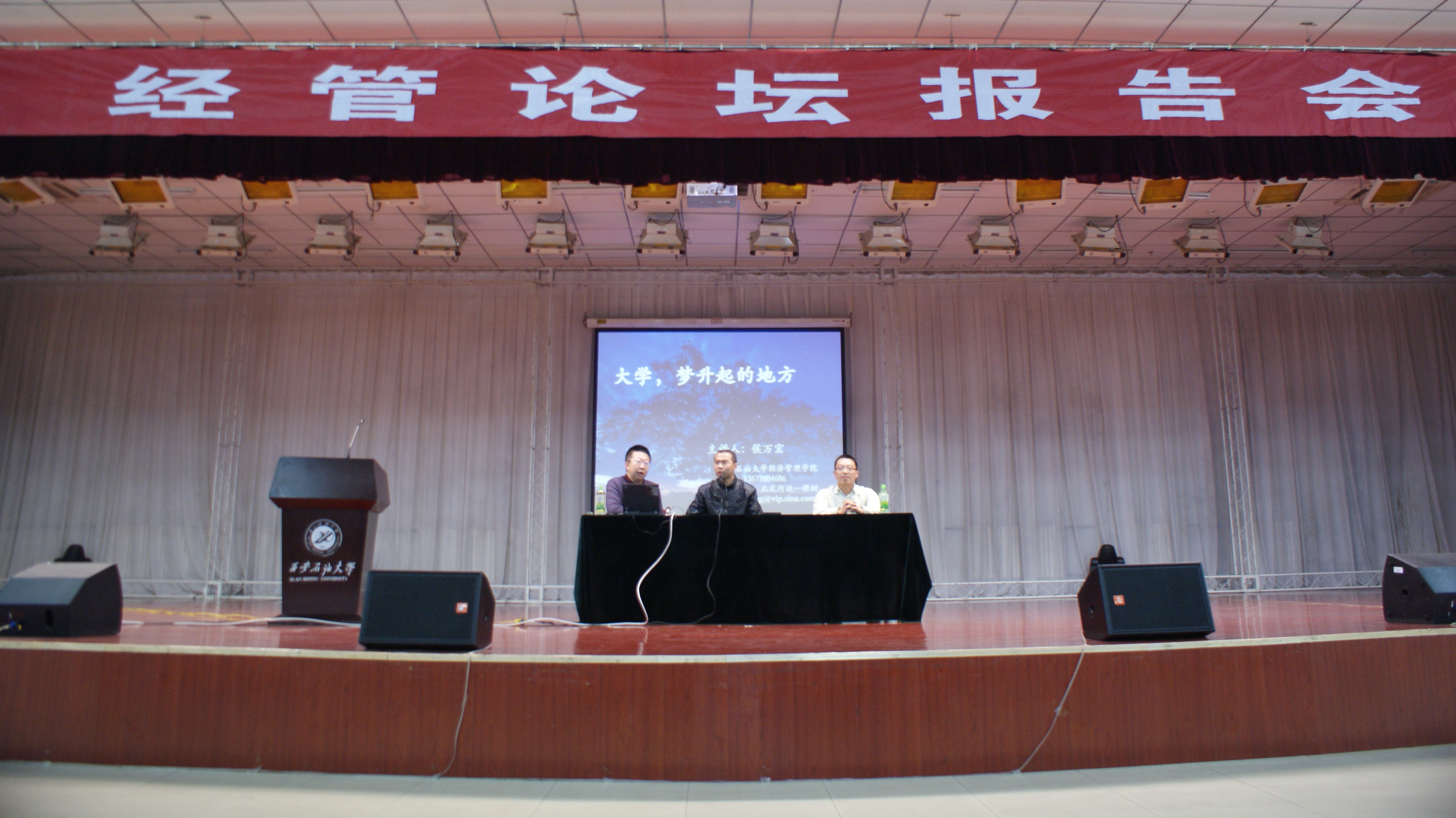 2013年10月31日下午16:30,由经济管理学院主办的第二期经管论坛在腾辉大学生活动中心举行。本次论坛由经济管理学院团委书记袁坤老师主持,邀请经济管理学院候万宏老师主讲,以“大学——梦想升起的地方”为主题展开。我校校友李广涛老师和2013级全体学生参加了本次论坛。