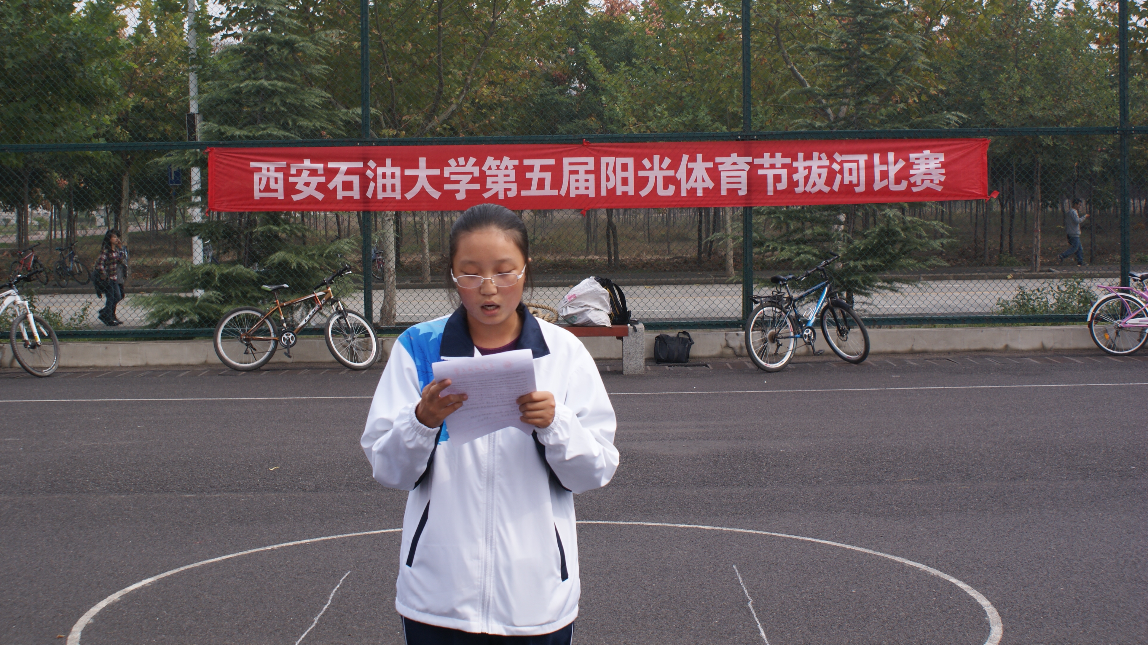 2013年11月1日12:30,由经济管理学院承办的第五届大学生阳光体育节拔河比赛在新校区篮球场隆重开赛。新校区各院系都参与了此次比赛,经济管理学院学生会体育部学生担当此次比赛裁判。