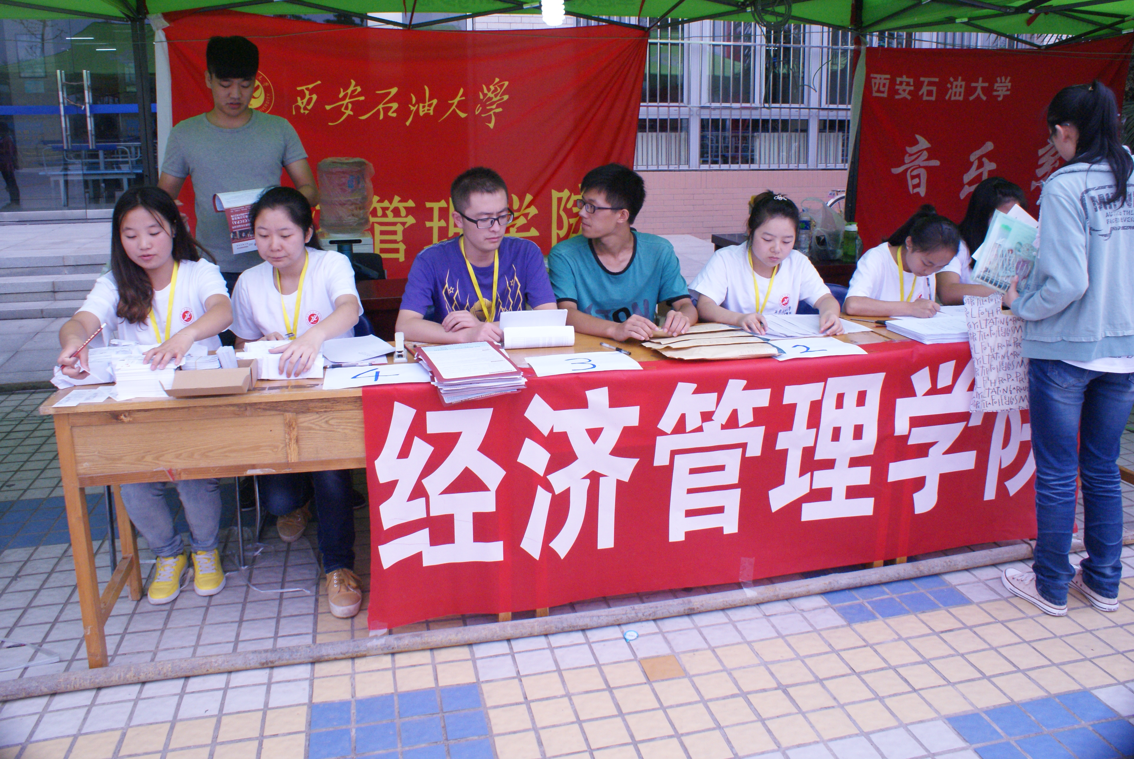 在这丹桂飘香的九月,带着收获和梦想的莘莘学子踏上了西安石油大学这片热土,开始它们崭新的的大学旅程。迎新首日清晨,经济管理学院迎新工作小组的老师和同学们在经济管理学院党委副书记蔡强老师、新校区团委书记袁坤老师的带领下已做好新生报名注册准备的一切工作,等待着为2013届新生们提供最温暖的帮助。正式迎新迎新工作有条不紊的展开,迎新工作小组的老师和同学们热情饱满的为2013届新生们引导办理注册手续。迎新工作小组的老师和同学们团结协作,迎接即将到来的新生和家长们,并解答新生和家长们的疑问,为百忙中陪伴学生报到的家长们提供微笑服务。校园渐渐热闹起来,新生们的脸上充满了自豪、自信。接下来的迎新活动还将有序展开,西安石油大学经济管理学院将继续发扬“有生自远方来,不亦乐乎”的精神,欢迎2013届新生们与我们共同生活、学习、进步!