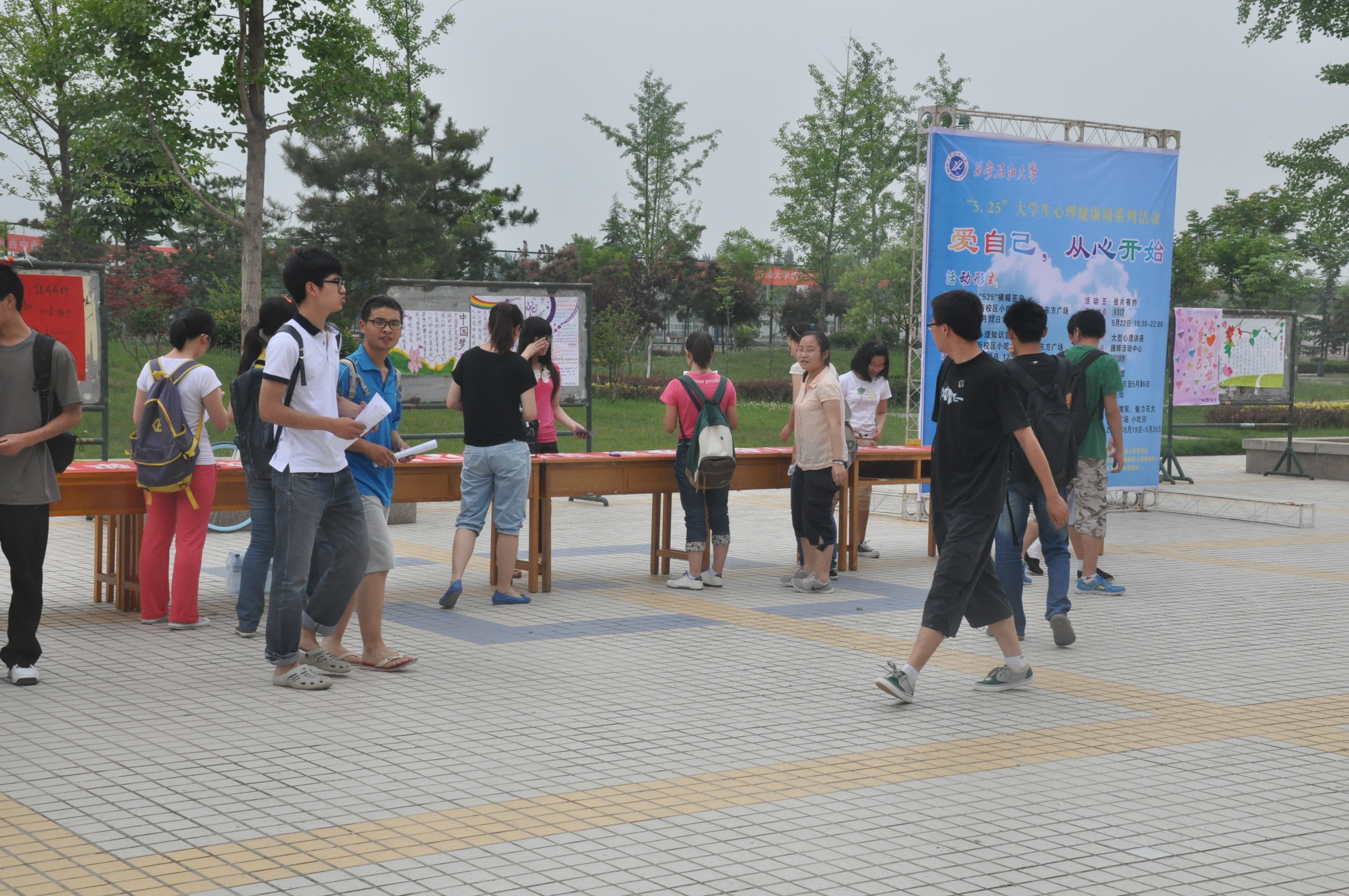 据悉,我校心理健康节由校心理健康中心和校团委主办,校心理协会承办,围绕“中国梦,校园情,快乐心”的主题。今年的活动以“爱自己,从心开始”的口号和主旨,呼吁全校学生关注自己的心理健康发展和心理健康问题,号召大家通过自查和同学之间的相互交流,引导大家学会调节自己的情绪,改善自己的人格。