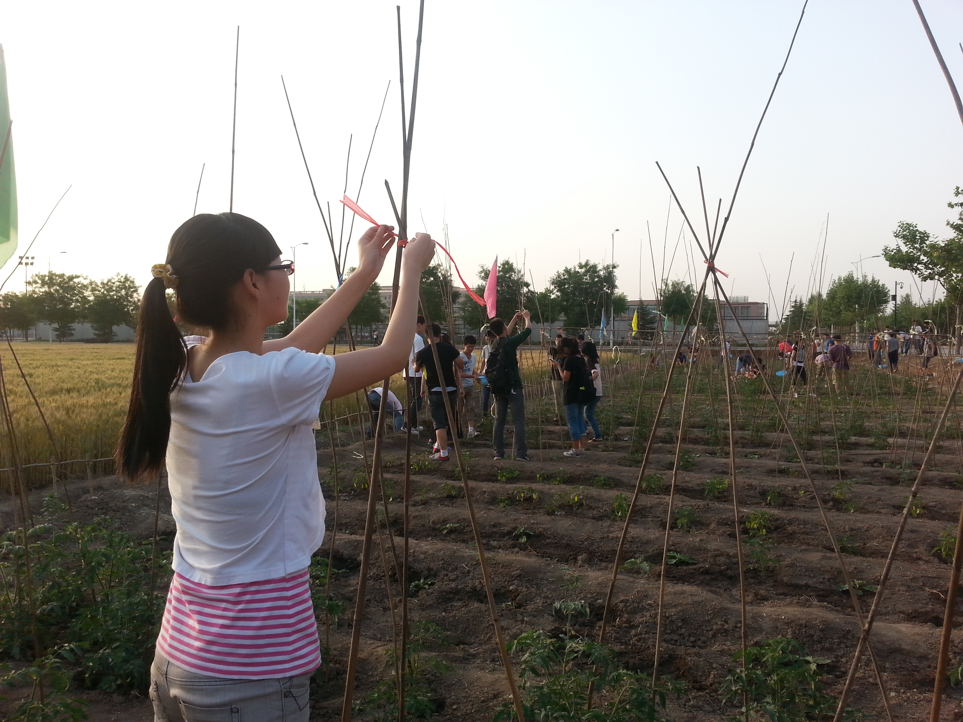 5月22日下午,校团委社团管理部组织各院系农场相关负责人对开心农场的蔬菜进行了施肥、浇水、搭架等工作。