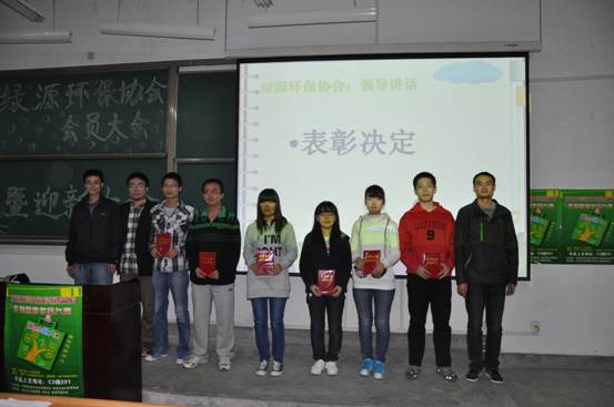 协会副会长雷伟伟为同学们宣读了协会章程。副会长陈欢欢对上一届协会工作做了总结,陈欢欢说协会去年主要开展了校庆期间污水简易处理装置展览、学雷锋清洁大扫除、废旧电池回收、六五世界环保日主题签名活动、环保创意作品大赛、开心农场、植树共建共青林活动等,通过一幅幅图片展示,使同学们对去年协会的工作有了更加系统和深刻的认识。