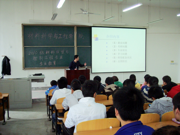 2012年3月29日14:30,材料科学与工程学院在新校区B125教室举行了材料成型及控制工程专业专业教育。本次讲座特邀我院材料加工工程系系主任周好斌教授主讲,2010级材料成型与控制工程专业165名同学参加了本次讲座。周好斌教授首先对同学们普遍关心的就业和考研问题作了讲解,并谈到了专业状况及后续课程学习安排部署情况。接着对材料专业的师资配备情况及学生出国深造的问题作了简要说明,特别是将考研学习做了规划,同时对考研政策等方面的信息进行了详细地介绍与分析,并鼓励同学们早做考研打算。最后还安排了现场讨论及提问环节。本次讲座使同学们了解材料专业的动态,进一步明确了专业方向,对大家正确规划后续的专业学习起到了重要的指导作用