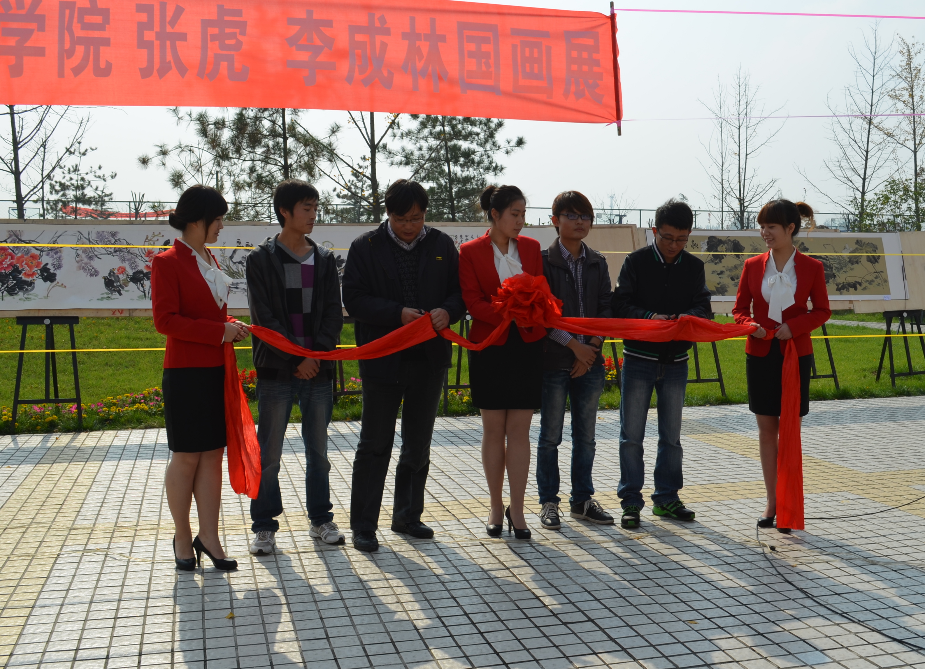 9月10日,由西安石油大学人文学院主办的李成林、 张虎个人国画展在西石大户县新校区东方广场拉开帷幕。参加开幕式的领导及嘉宾有西石大学生处处长张凌寒、校团委宣传部部长杨富民、人文学院辅导员惠笑吟和姜婷,画展还邀请了来自西安美术学院、陕西科技大学、西安工程大学、咸阳师范学院等学校的组织和个人前来参观。现场还展出了马瑞生、苏杰等6位老师送来的祝贺作品。