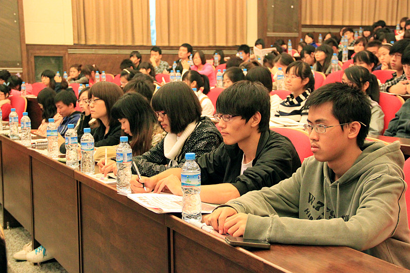 学生记者认真听取报告会
