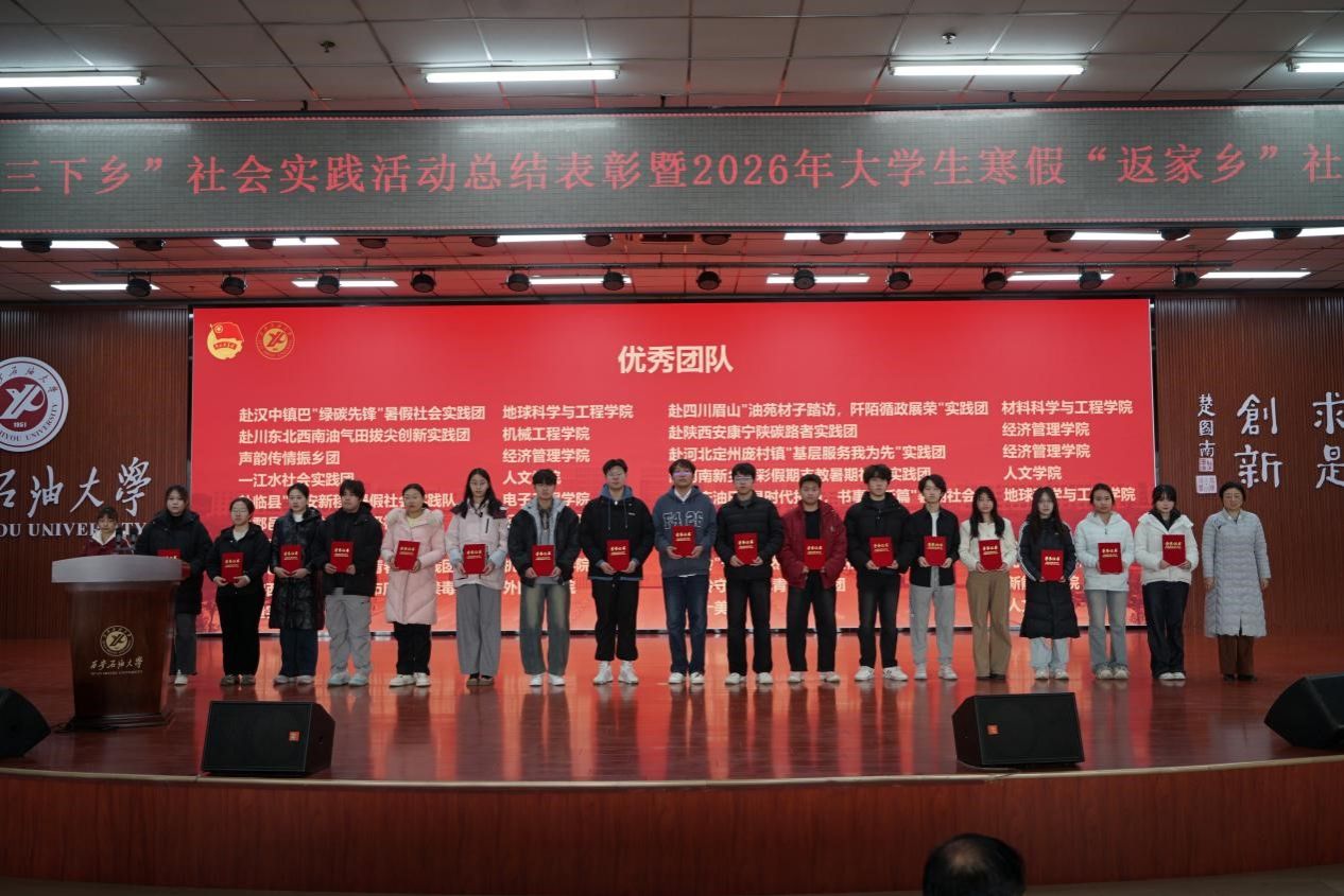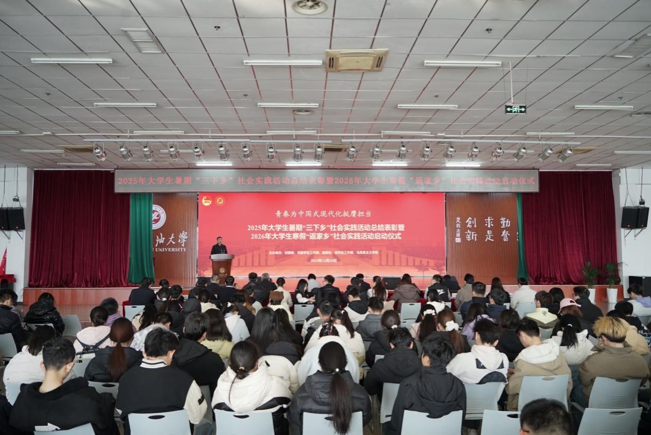 种宇宏代表学校对在2025年大学生暑期“三下乡”社会实践中获奖的团队和个人表示衷心的祝贺,对在社会实践工作中辛勤付出的指导教师和工作人员表示诚挚感谢,同时对即将参加2026年大学生寒假“返家乡”社会实践的全体师生表示亲切的问候和诚挚的祝福。他从我校连续36年组织学生赴延安开展社会实践的历史传承出发,结合“青春为中国式现代化挺膺担当”的时代主题,系统总结了本年度社会实践所取得的丰硕育人成果,并对未来深化实践育人工作提出要求。他就高质量推进我校大学生社会实践工作提出了四点希望:一是筑牢信仰之基,在实践感悟中坚定理想信念。希望大家将社会实践作为学习领会党的创新理论的生动课堂,在深入基层、观察国情、服务群众中坚定“听党话、跟党走”的政治自觉,将个人理想追求融入国家和民族的事业;二是锤炼过硬之能,在知行合一中增长智慧才干。要秉持学以致用的态度,将专业知识与社会实践紧密结合,尤其要立足我校石油石化等特色学科优势,在解决实际问题中磨炼意志、培养作风、提升综合能力;三是提升实践之效,在精心组织中服务社会发展。要推动社会实践与专业教育、思政教育、就业引导深度融合,设计“小而精、真而实”的项目,探索建立成果转化机制,实现服务社会与自我成长的双赢;四是恪守安全之责,在严密保障下实现行稳致远。必须将安全放在首位,认真做好行前教育培训、应急预案制定和过程管理,确保实践活动都安全、有序、顺利开展。