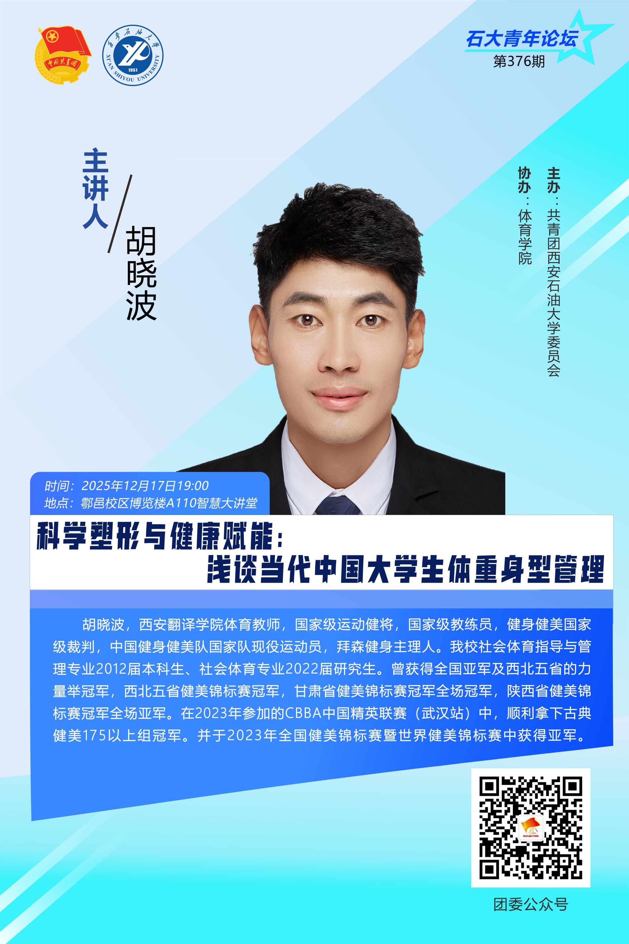 石大青年论坛第376期:科学塑形与健康赋能——浅谈当代中国大学生体重身形管理
