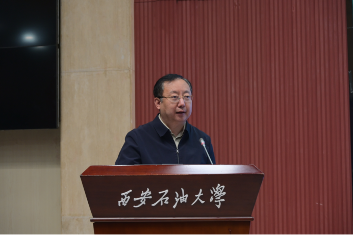 种宇宏代表学校致辞。他对共青团陕西省委长期以来关心支持学校青年就业创业工作表示感谢,向莅临现场的各位领导和嘉宾表示热烈欢迎。他指出,当前正值高校毕业生求职关键期,引导青年学生树立正确的择业观、就业观,到基层和祖国最需要的地方建功立业,具有十分重要的现实意义。本次“出彩人生‘就’在基层”就业引航示范宣讲活动,正是落实立德树人根本任务、服务国家战略需求的重要举措。他强调,活动不仅为广大学子提供了思想“引航”,通过榜样亲身讲述,帮助同学们认识到基层同样是大有可为的广阔舞台;也为青年成长精准“赋能”,通过分享一线奋斗经验和实用技能,提升同学们服务基层、适应社会的能力;同时进一步畅通了人才向基层流动的渠道,推动实现更高质量和更充分就业。他勉励同学们珍惜学习机会,从榜样身上汲取奋进力量,传承石油精神、铁人精神、延安精神,将个人理想融入国家发展和民族复兴的伟大事业中,主动到基层和人民中去建功立业,让青春在服务基层、奉献祖国中绽放光彩。