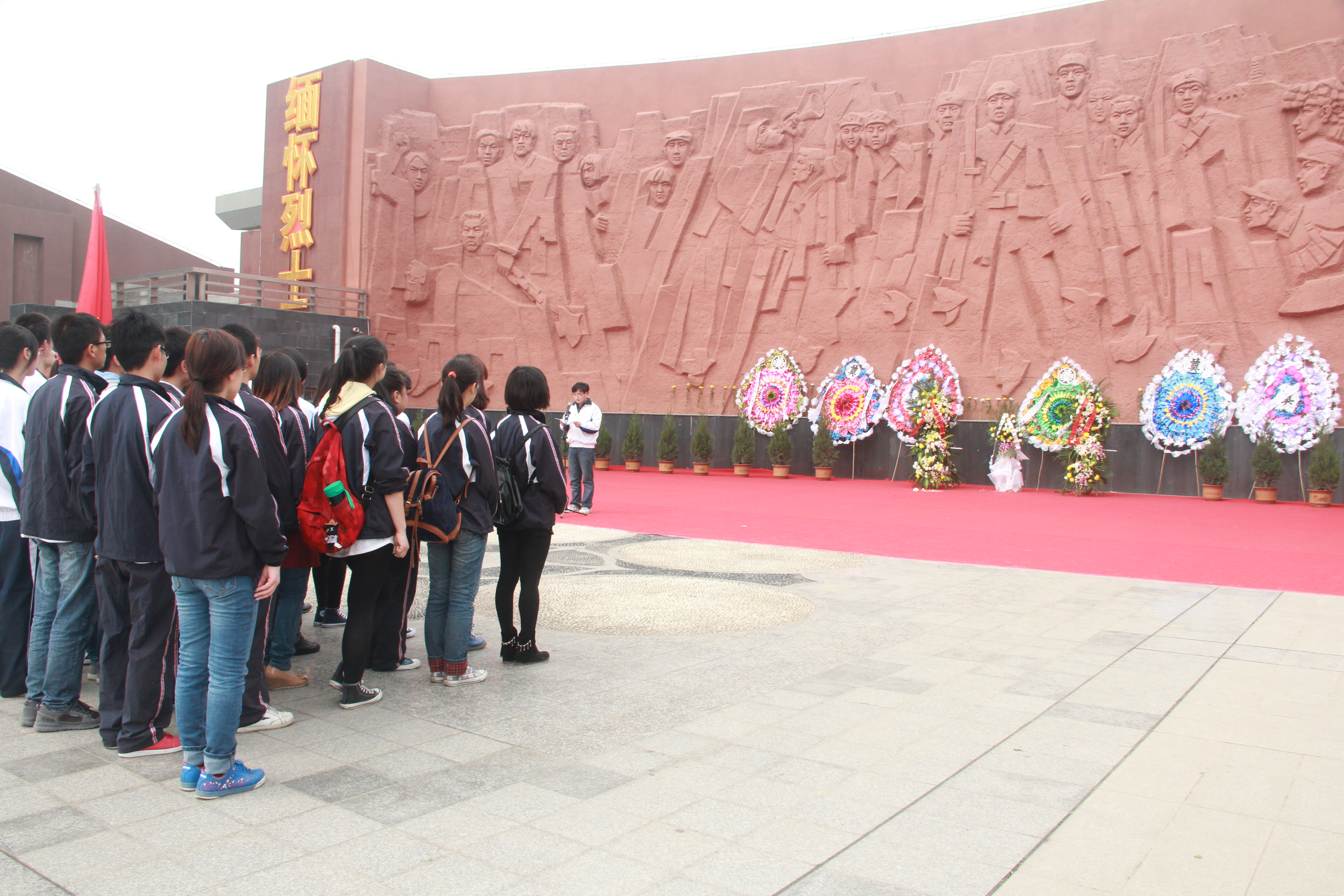 带着无限的敬仰与哀思,全体老师和同学们来到烈士陵园纪念堂前的广场举行悼念仪式。学生代表向烈士敬献了花圈,全体人员默哀以表达对先烈的深切怀念,11级学生党员代表为革命英烈致悼词。悼念仪式结束后,全体人员在讲解员的带领下参观了烈士纪念馆,瞻仰了烈士们的遗物遗像,了解了烈士们的英雄事迹。