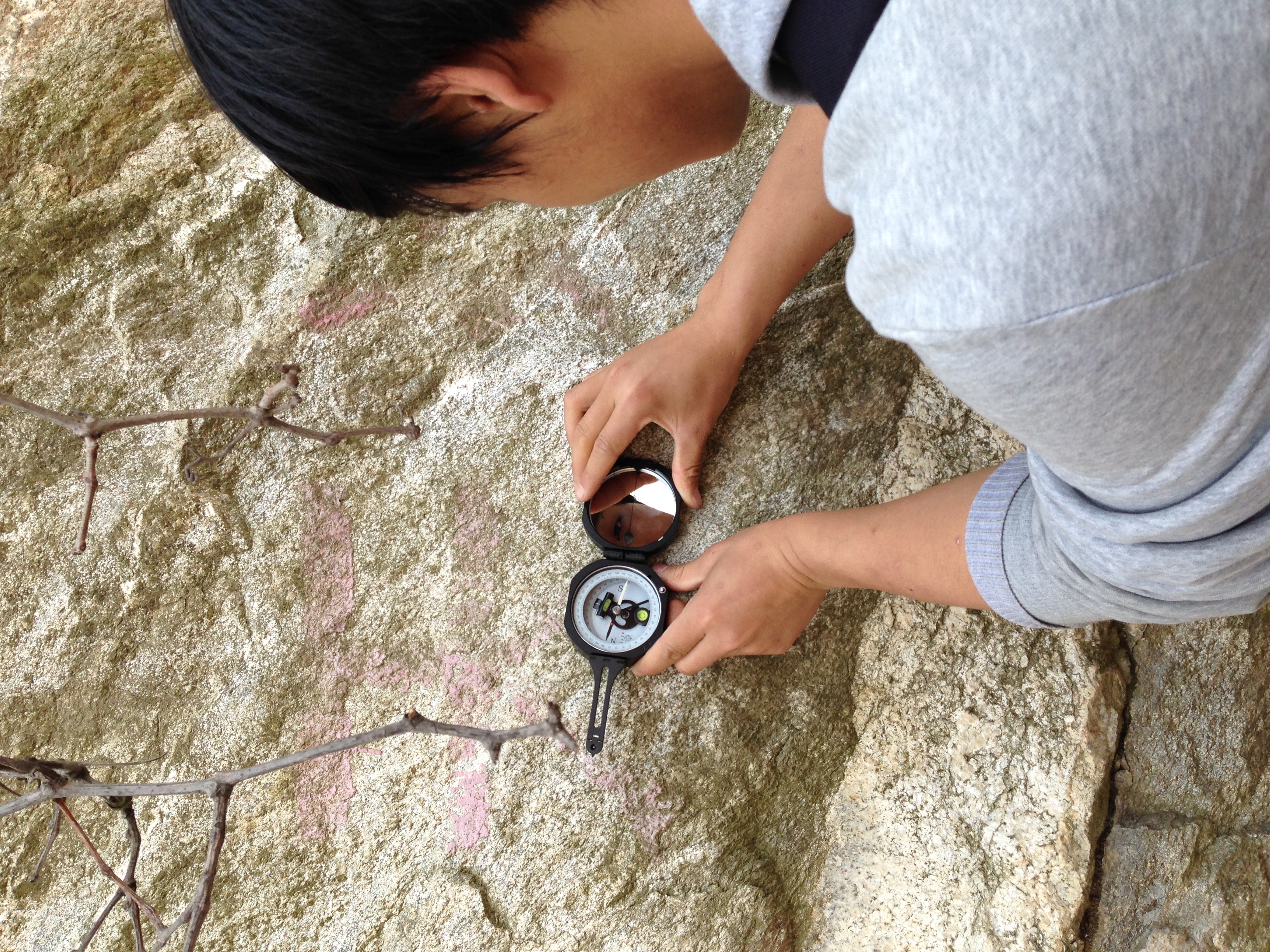 本次活动的主要目的是对高冠瀑布景区山上出露岩石的构造进行实地观测,并学习和运用地质罗盘的使用方法。活动开始前,首先由勘探爱好者协会会长对本次活动的目的和户外勘查的相关事宜进行了说明,随后,岩石协会会长着重强调了户外考察时应该注意的安全事宜。