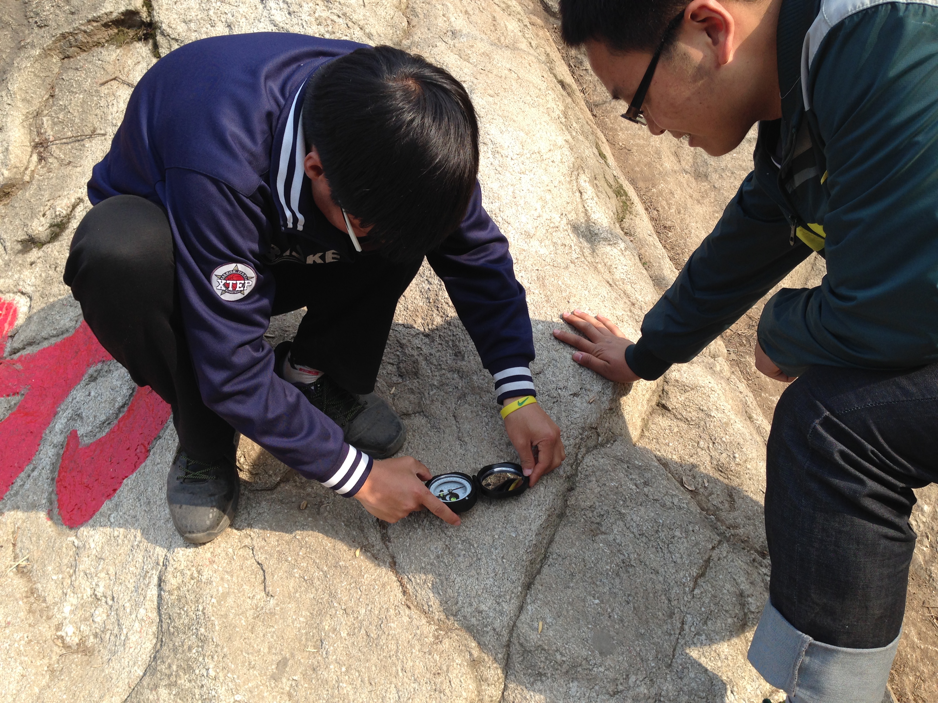活动开始后,由岩石协会会长带队共同攀登了高冠瀑布景区中的山峰,在攀登过程中,组织同学们对出露岩石的构造和产状进行了详细察看,并由勘探爱好者协会会长向大家讲解如何使用地质罗盘测量走向、倾向和倾角,同学们积极询问并纷纷动手实践,个个显得兴致勃勃。活动最后,同学们合影留念并交换了活动感受。同学们纷纷表示:“今天的活动不仅让我们走出校门,领略到了大自然的美景,增进了会员间的交流与友谊,并且使我们感受到了地质勘查的魅力。希望以后能够经常组织这样的户外活动。”