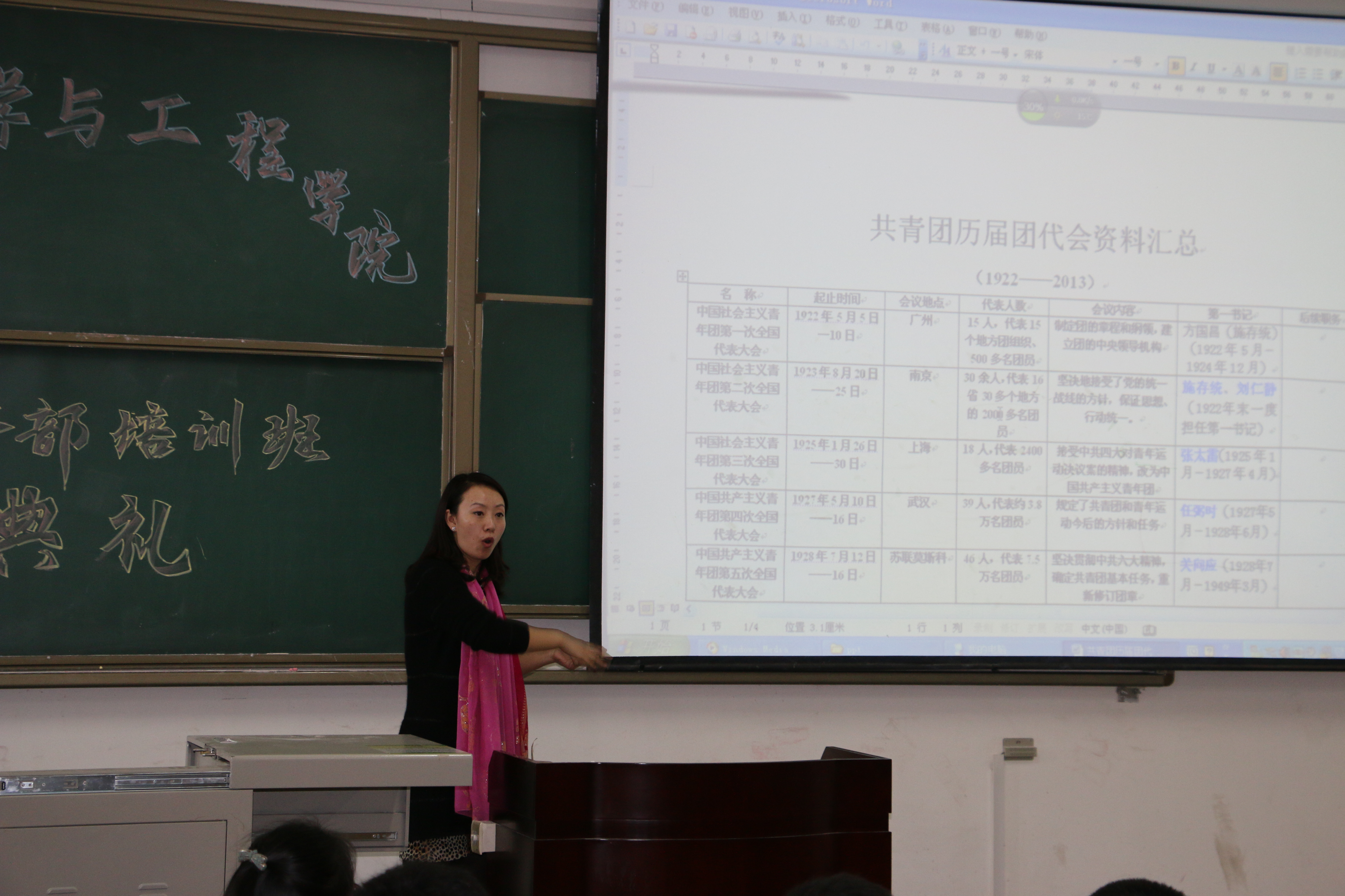 2014年3月12日,材料科学与工程学院首届团学干部培训班开学典礼暨第一讲在新校区教学B区205室正式召开,材料学院党委副书记马文庆、校团委副书记贾莉娜、新校区辅导员老师及院团学干部代表参加了开学典礼和第一堂课。