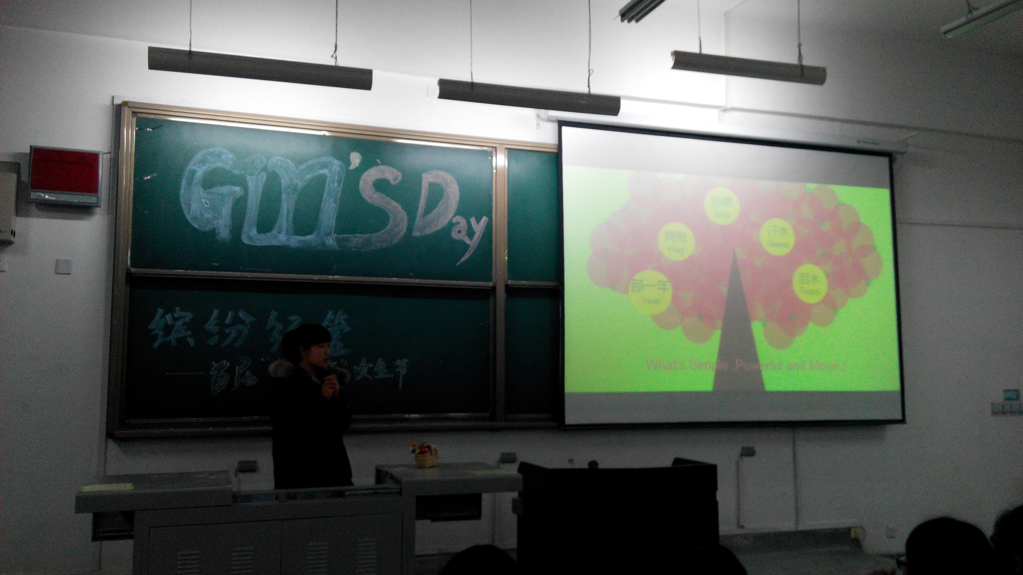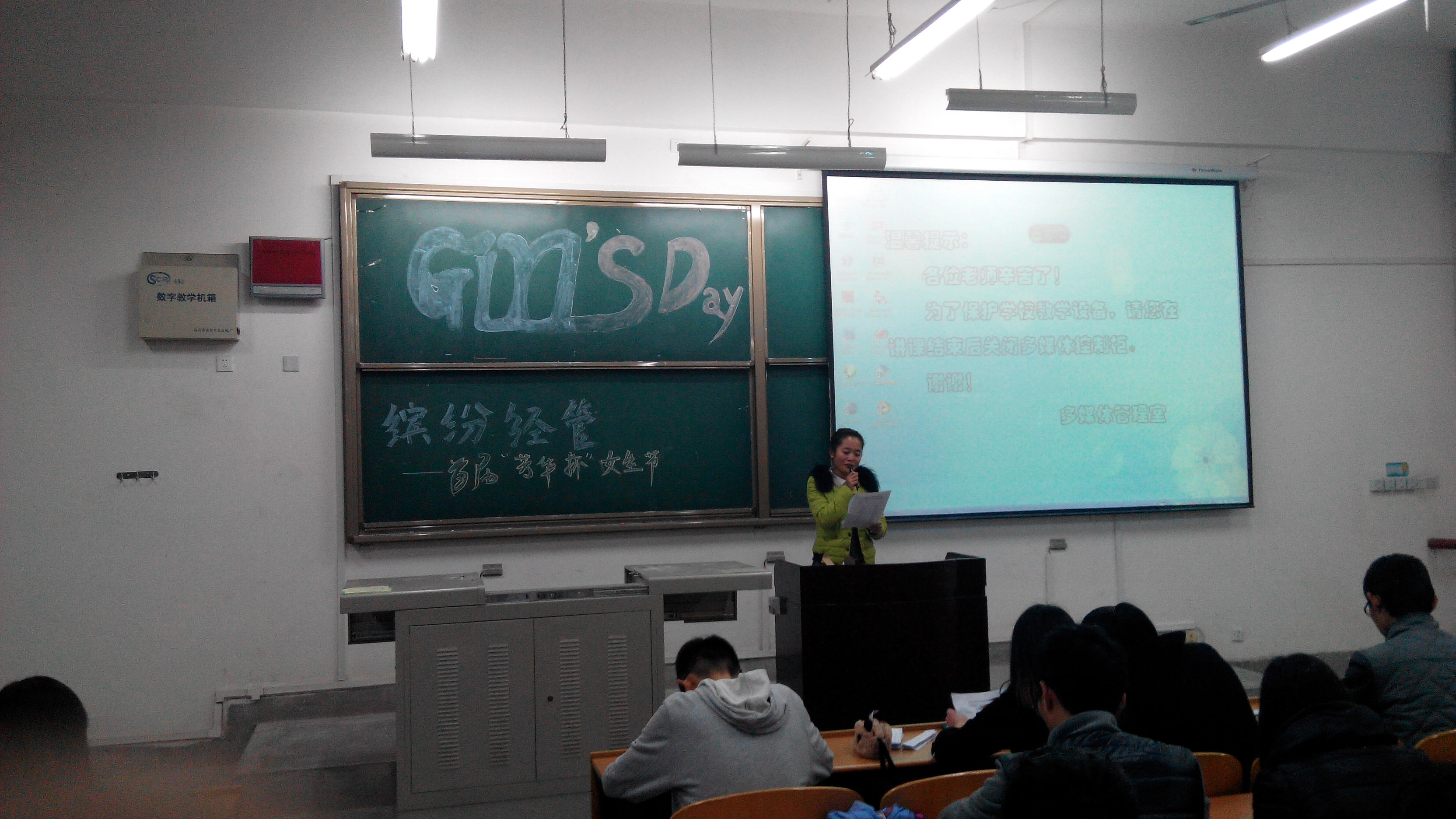 2014年3月5日19点30分,由经济管理学院学生会女生部主办的首届“芳华杯”女生节正式拉开帷幕。晚会为发扬女生节传统,本着服务女生、方便女生的态度,以欢乐、简朴、创新为理念,充分发挥学生的自主性,让学院的女生感受学院的温暖、节日的快乐。本次晚会邀请了经济管理学院新校区学生会主席姜艾彤,副主席王怡以及学生会各部门负责人对女生们的创意进行点评打分。