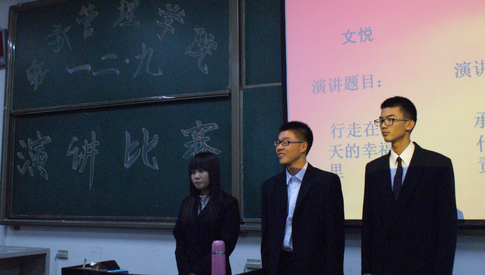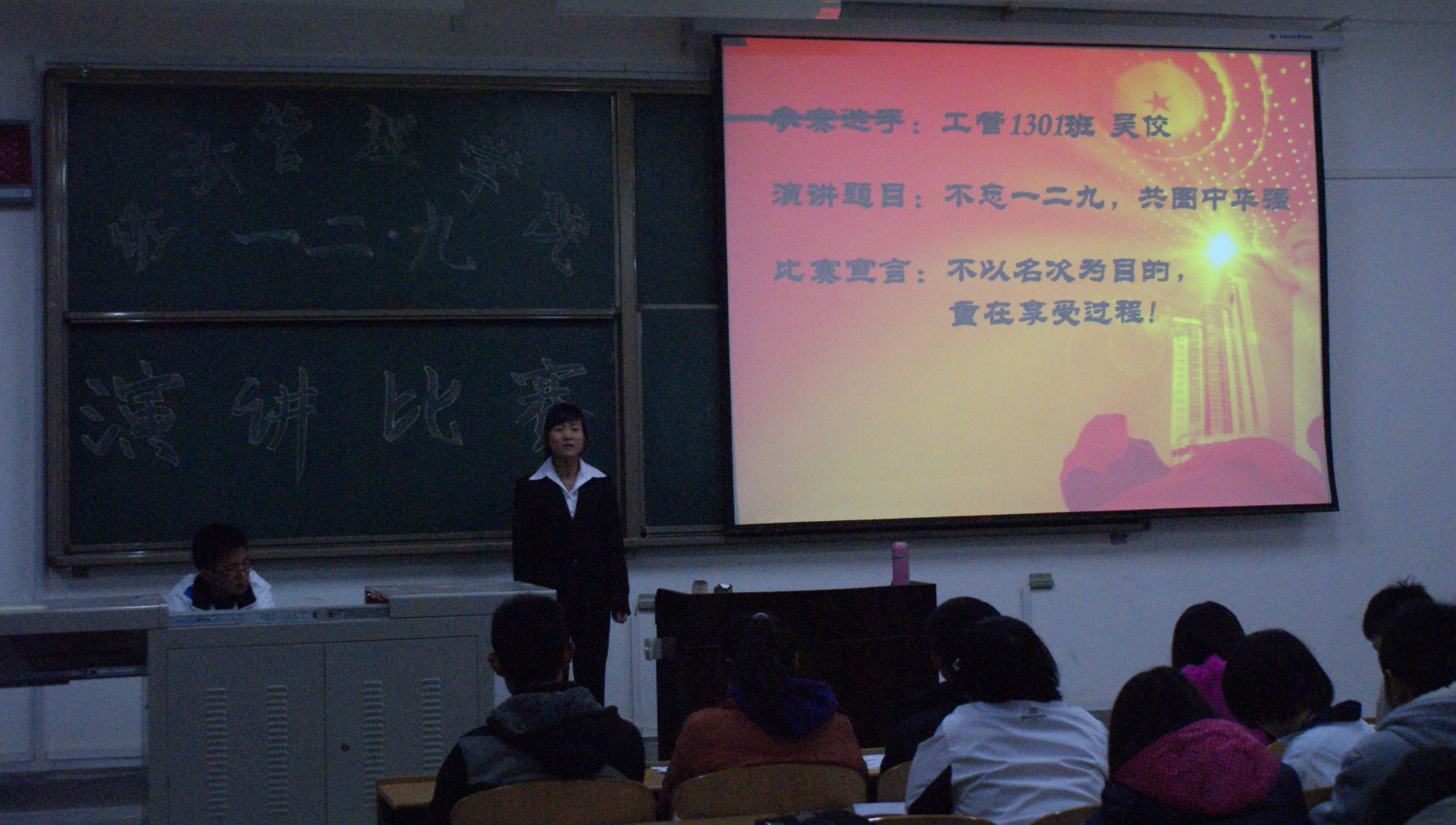 12月9日晚7点半,为纪念12•9学生爱国运动,继承和发扬爱国主义精神,使学生树立为报效祖国和振兴中华而努力学习的远大志向,经济管理学院于新校区B205教室隆重举办了“12•9爱国演讲比赛决赛”。经济管理学院2013级辅导员樊理君老师出席了本次比赛。
