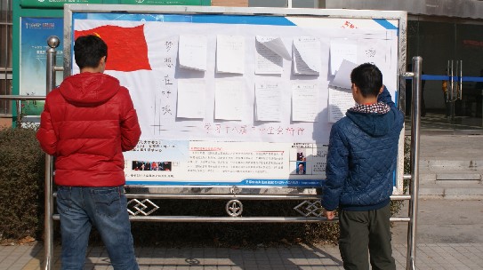2013年12月11日中午,经济管理学院2012级学生党支部在新校区东方广场举行了“学习十八届三中全会精神”展板展示活动。