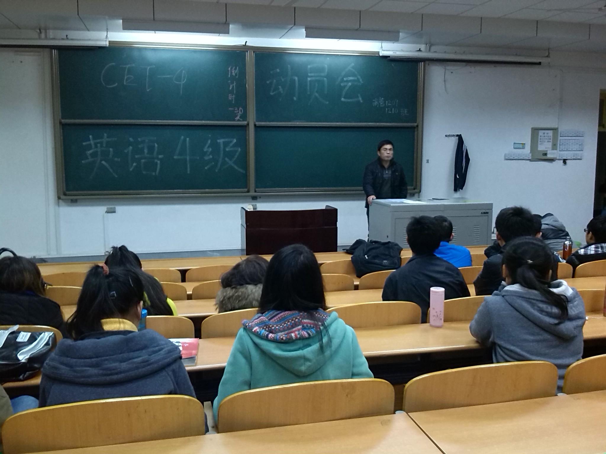 2013年11月7-25日,经济管理学院2012级在新校区教学A区、B区教室分别召开了以“积极备战英语四级”为主题的班会,各班班主任应邀参加。
