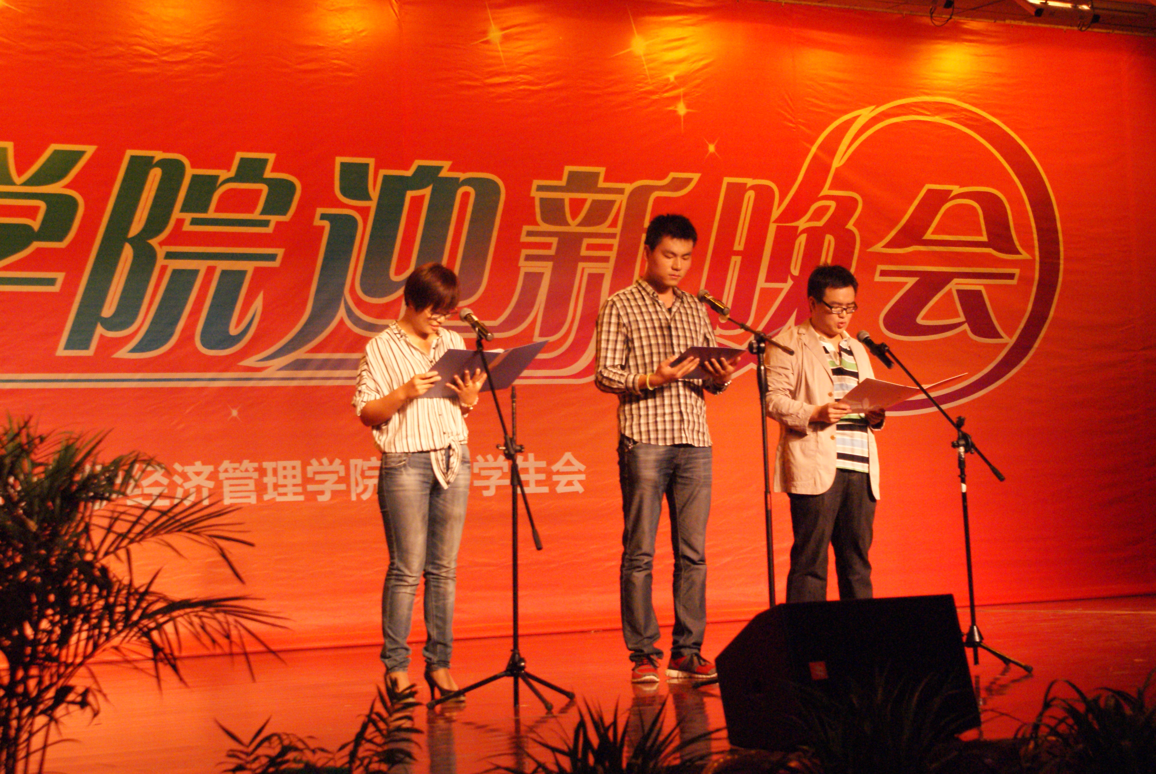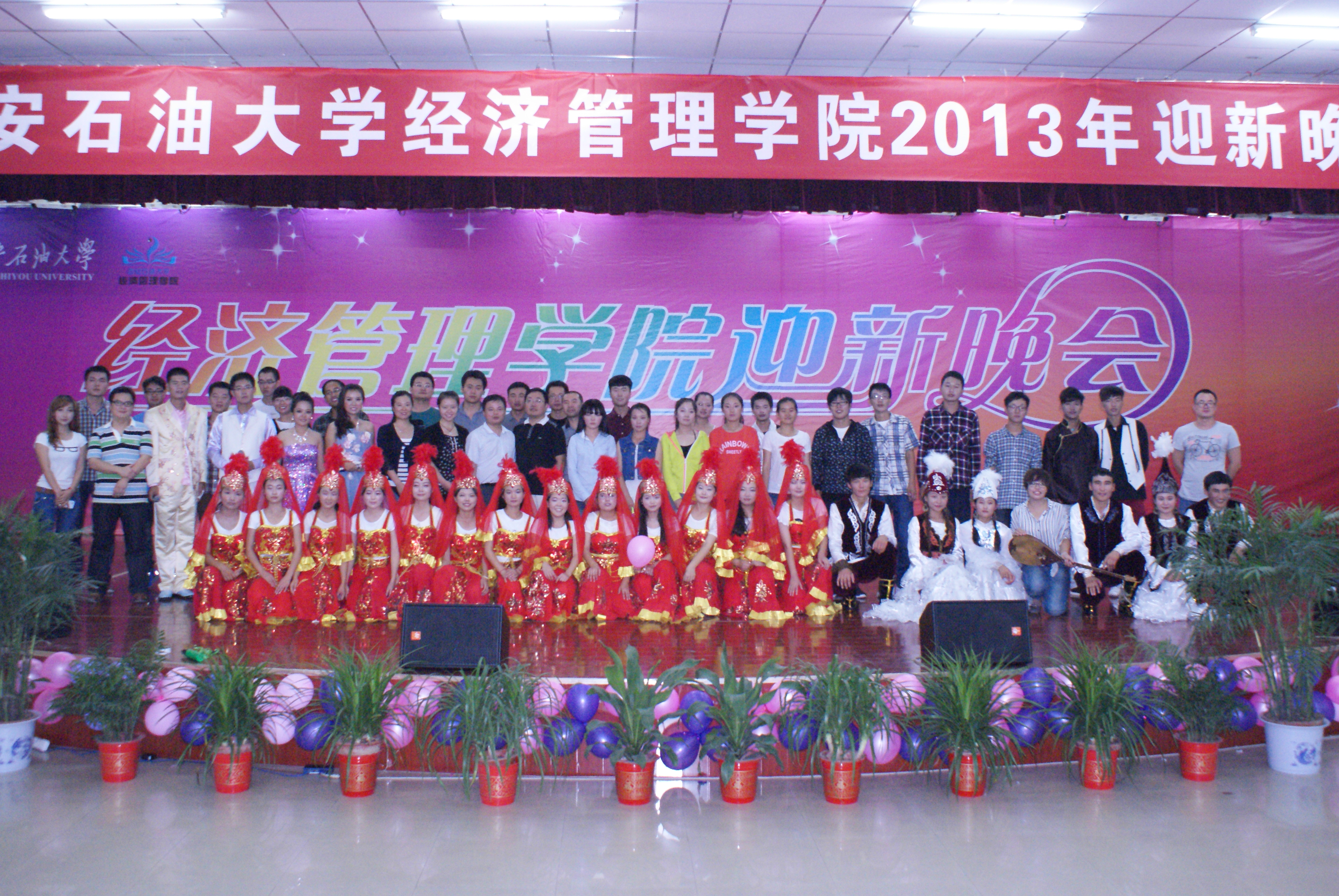 2013年10月10日晚19点30分,由经济管理学院团委学生会主办,院新校区团委学生会承办的“西安石油大学经济管理学院2013年迎新晚会”在新校区腾辉活动中心隆重举行,本场晚会是为欢迎2013级新生的到来,为我院学生提供锻炼自我、展示才艺的舞台而准备的。晚会邀请了经济管理学院党委书记马行天教授,校团委副书记李浩老师,院党委副书记蔡强老师,院团委书记袁坤老师,以及各兄弟院系的辅导员老师们。 19点30分,晚会在一段充满活力的现代舞后拉开了帷幕。我院党委书记马行天教授发表贺词,他对2013级新生以优异的成绩考入我校表示了热烈的祝贺和殷切的期望,并希望他们在将来攀得更高,走的更远。晚会节目包括歌曲、情景剧、朗诵和舞蹈节目等。节目多样,精彩不断,为在场的所有师生们献上了一场视听盛宴,同时也展现了同学们积极向上的精神风貌和活力四射的个人魅力。一曲《水乡》笛子伴舞令全场观众无不心旷神怡。跳民族舞的姑娘们用优美的舞姿展现出少数民族能歌善舞的才华。情景剧《我们长大了》真切的照映出新生在军训历程中从高中生向大学生的转变,幽默而富有新意的语言引发了一阵阵笑声。我院辅导员武威老师、樊理君老师和陈娇老师的方言版《再别康桥》更是将晚会推向了最高潮,最后晚会在《爱因为在心中》的优美旋律中落下帷幕。 在新老同学的充分准备,在学院团委学生会各部门的积极配合下,迎新晚会圆满成功。本次晚会充分展示了我院学生的风采和活力,增强了文化氛围,丰富了同学们的课余生活,彰显了经济管理学院的雄风。