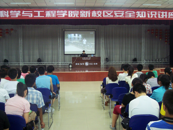 为加强安全教育,培养学生的自我保护能力,2012年5月8日晚上7:30在新校区腾辉活动中心,材料科学与工程学院邀请新校区警务室孙尚芳干事为2011级学生做安全知识讲座,2011级全体学生、辅导员何小纪老师参加了此次报告会。