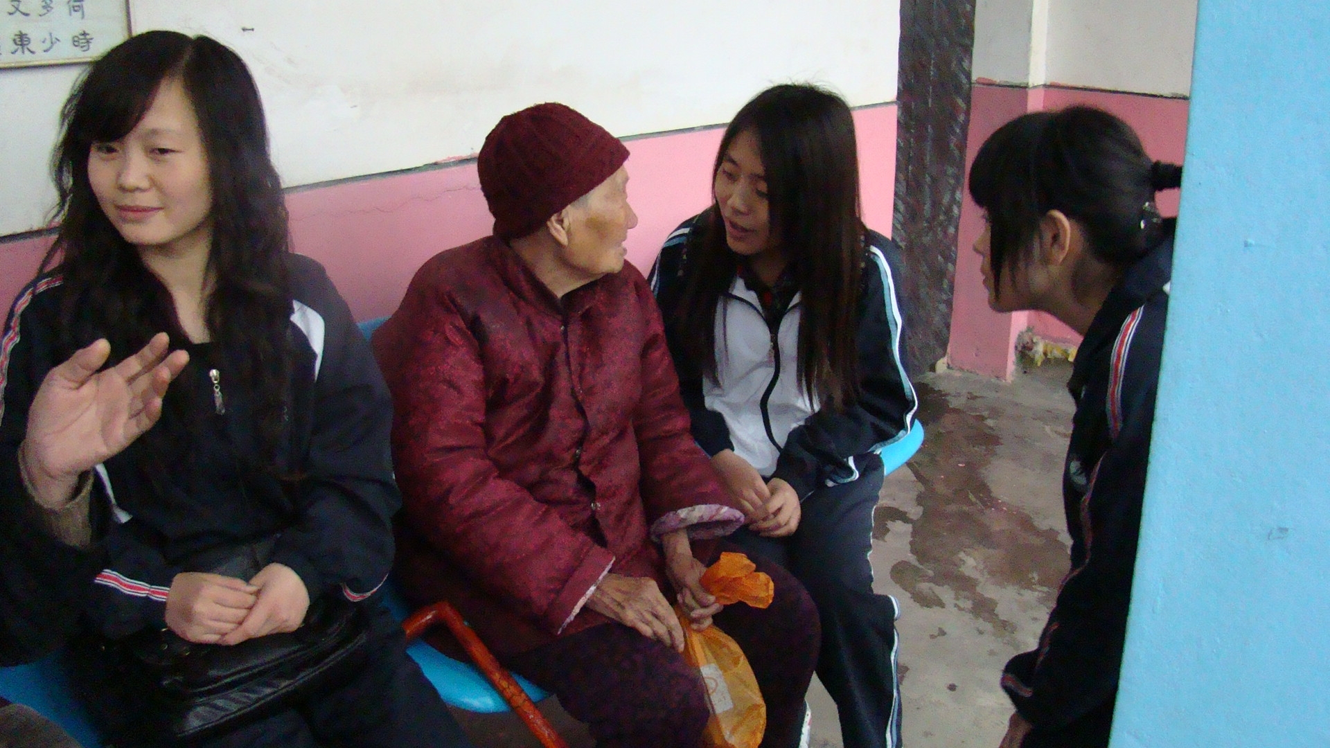 与老人亲切交流