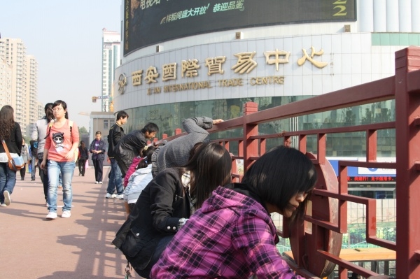 化学化工学院2008级学生党支部40余名学生党员在学院党总支副书记吴民生、学工办主任董丙剑、2008级辅导员樊理君的带领下来到小寨立交桥擦洗栏杆。到达地点安排好分工,同学们便投入到热烈的劳动中,吴民生副书记和两位带队老师与同学们一起擦拭栏杆,清除了栏杆上的泥土和口香糖,他们不怕脏、不怕累的精神赢得了路过市民们的交口称赞。经过一下午的紧张忙碌,立交桥焕然一新。