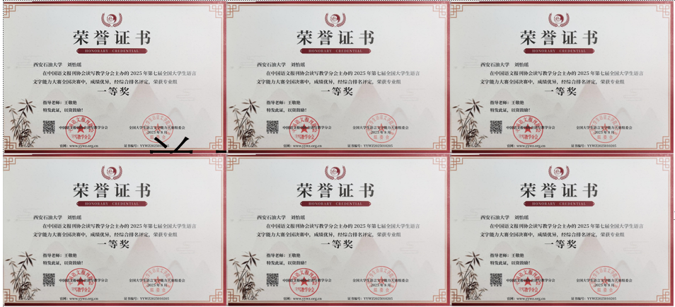 在此次大赛中,我院国际中文教育专业学生表现突出,共有6名学生获奖。刘怡瑶同学荣获专业组全国一等奖(指导教师:王敬艳);李纹和、刘渝琳、毛新月、梅竹馨、张晨蕊同学获专业组全国三等奖(指导教师分别为:王敬艳、柯卓英、王敬艳、王敬艳、郑莉)。