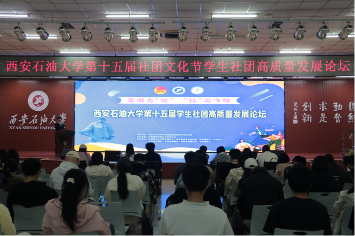 在鄠邑校区腾辉大学生活动中心举办的学生社团高质量发展论坛,校团委学生社团管理中心全体成员、学生社团负责人及成员代表300余人参加。社团管理中心负责人总结了2025年学生社团工作并介绍第十五届社团文化节活动内容。西北大学小黑戏剧工作室,西安建筑科技大学第二相声社,我校大学生讲解队、青年志愿者协会等优秀社团作社团文化建设与创新发展理念交流分享。